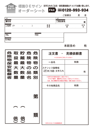 ご注文・見積依頼は下記オーダーシートをFAXでお願いします。