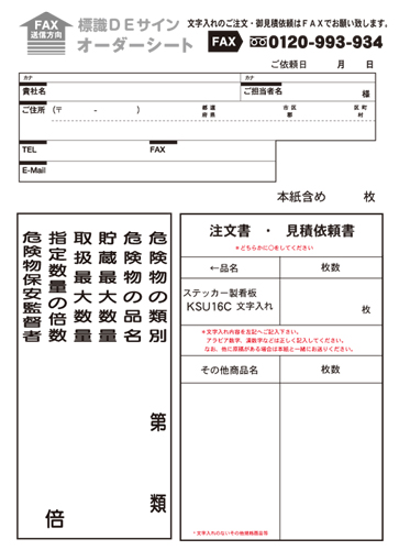 ご注文・見積依頼は下記オーダーシートをFAXでお願いします。