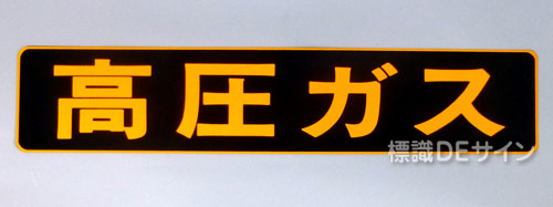 ●下地は黒で文字をJIS Z 9103:2018 蛍光オレンジとし「高圧ガス」と記載したもの