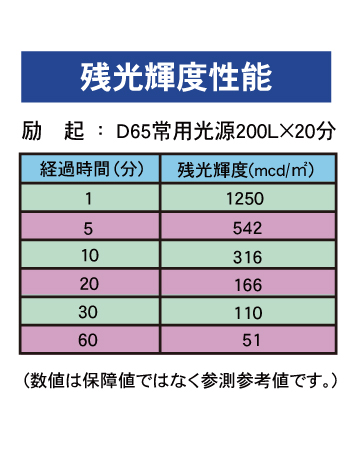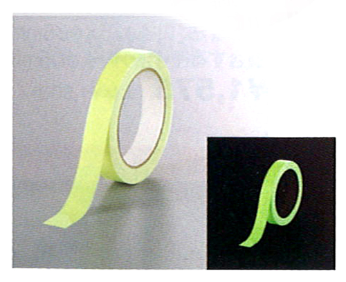 平成22年4月消防予第177号により高輝度蓄光テー^プ等が(光を発する帯状の標示」という法令用語として定義され60分未満のバッテリー付電気式通路誘導灯や照度不足の箇所において高輝度蓄光式誘導標識を設置する際のサポート用品として認められました。