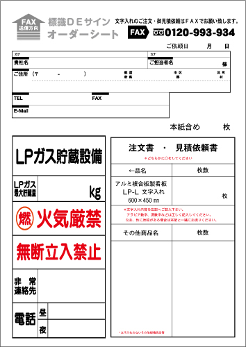 ご注文・見積依頼は下記オーダーシートをFAXでお願いします。