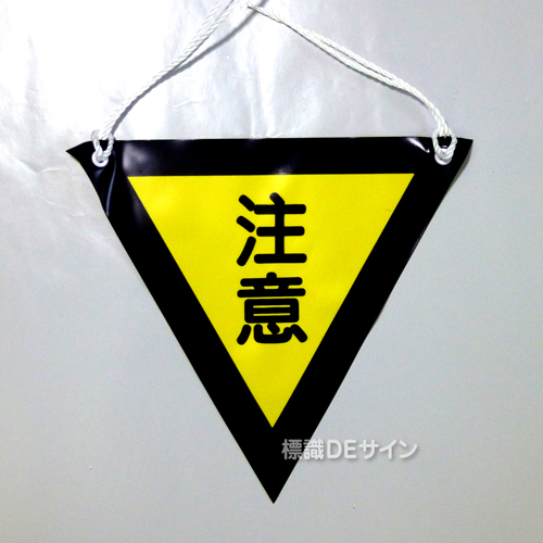 三角旗No.4-10連 「注意」 ターポリン製 280㎜▽×10m