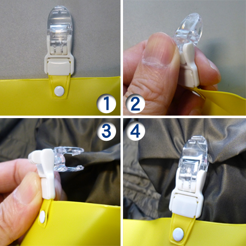 ④ 再び、クリップの頭を戻したら口が閉じ衣類に固定できます