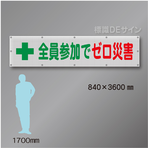 メッシュ幕105  全員参加でゼロ災害 ポリエステル製 840×3600㎜