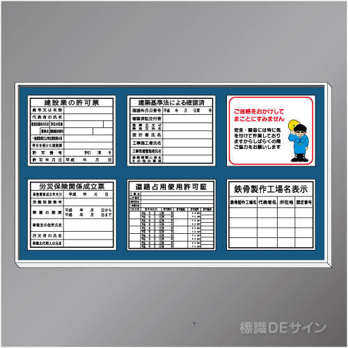 土木建築現場・工場構内標識 > 法令許可ベース板・   イラストセットパネル