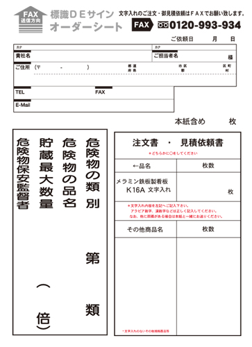ご注文・見積依頼は下記オーダーシートをFAXでお願いします。