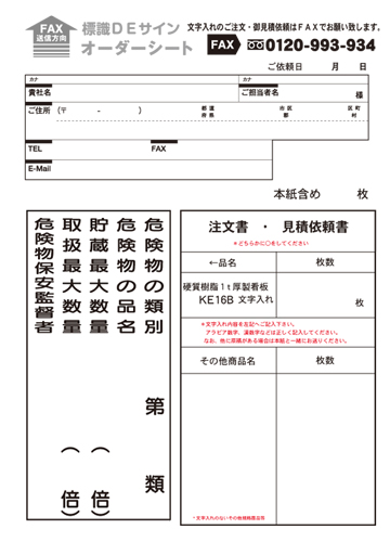 ご注文・見積依頼は下記オーダーシートをFAXでお願いします。