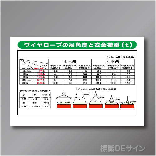WG8 硬質樹脂製 「ワイヤーロープの吊り角度と~」 600×900㎜