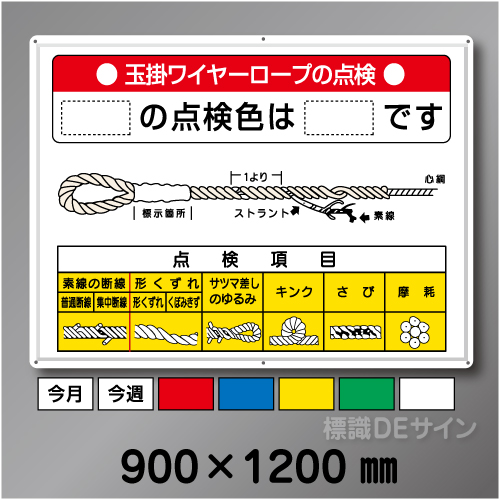 WG5 メラミン鉄板製 「玉掛ワイヤーロープの点検」 900×1200㎜