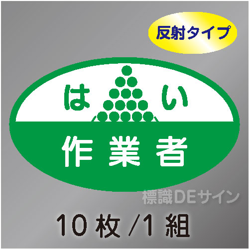 反射ヘルステ19 「はい作業者」 10枚/1組 35×60㎜(楕円)