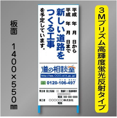 工事標示板101 550×1400㎜ 3Mプリズム高輝度反射 文字入り(道の相談室入り) 鉄枠付き