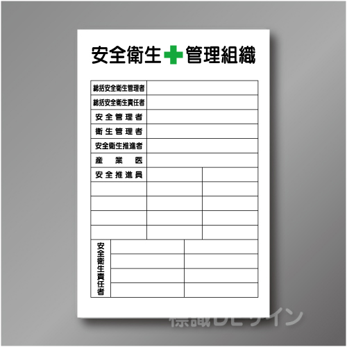 WF19 硬質樹脂製  「安全衛生管理組織」 900×600㎜