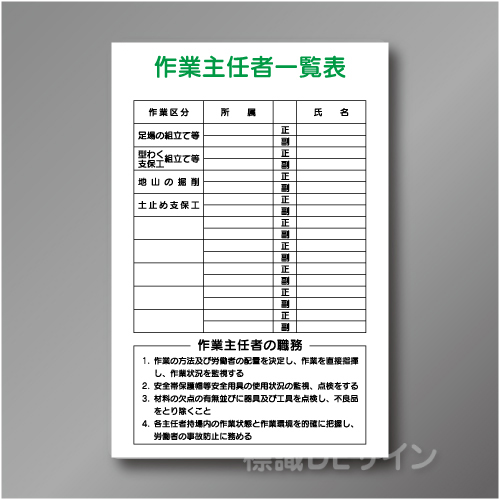 土木建築現場・工場構内標識 > 資格・選任者一覧表