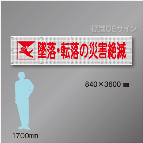 メッシュ幕103  墜落・転落の災害絶滅 ポリエステル製 840×3600㎜