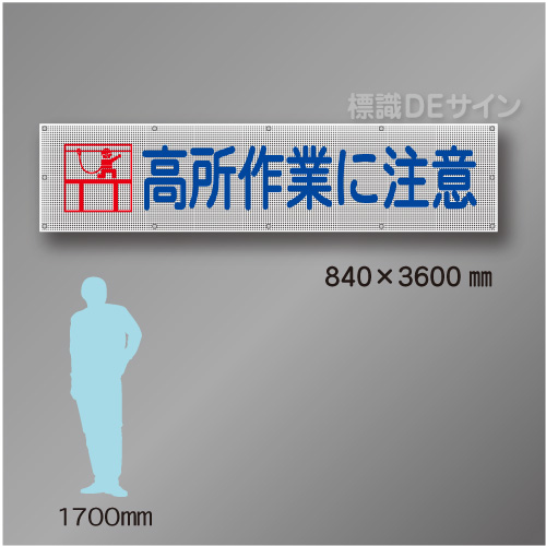 メッシュ幕101 高所作業に注意 ポリエステル製 840×3600㎜