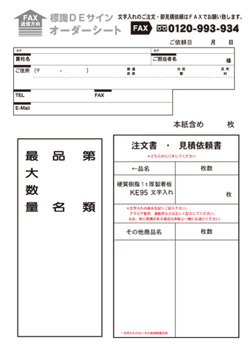 ご注文・見積依頼は下記オーダーシートをFAXでお願いします。