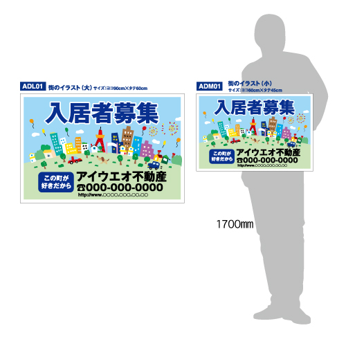 ADL01-樹脂1mm厚製 社名入募集看板タテ60㎝×ヨコ90㎝