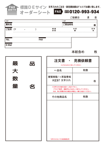 ご注文・見積依頼は下記オーダーシートをFAXでお願いします。