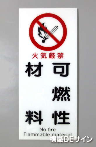 F40 「火気厳禁 可燃性材料」 硬質樹脂製  450×200㎜