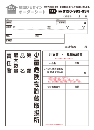 ご注文・見積依頼は下記オーダーシートをFAXでお願いします。