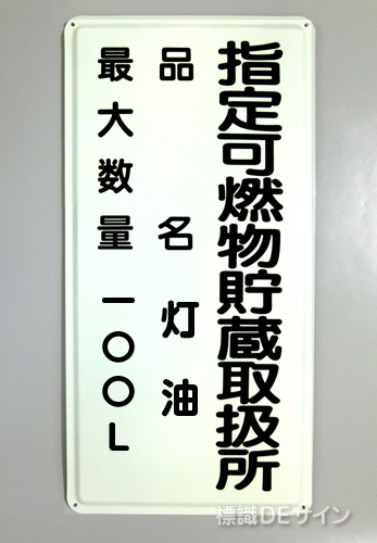 K99 鉄板製標識 「指定可燃物貯蔵取扱所+品名+最大数量」
