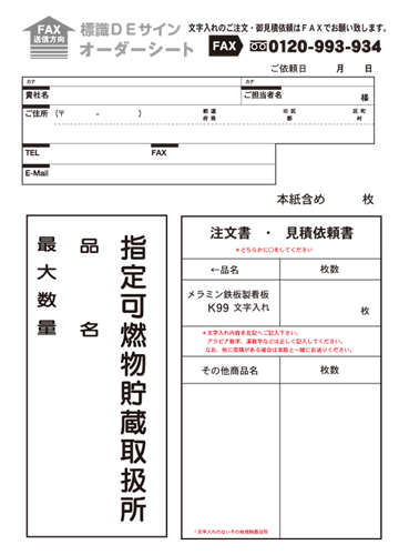 ご注文・見積依頼は下記オーダーシートをFAXでお願いします。