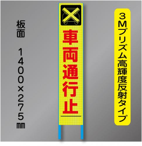 スリム蛍光高輝度反射工事看板 SSL-2B 「車両通行止」 275×1400  鉄枠付