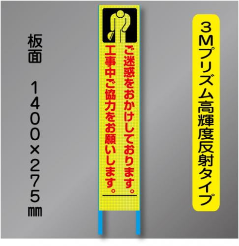 スリム蛍光高輝度反射工事看板 SSL-7「ご迷惑」 275×1400  鉄枠付