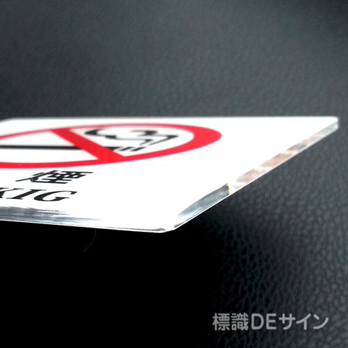 透明のプレートに裏から文字やマークを透明シートに印刷して貼付けた後下地色(白)のシート貼付けしたもの。
