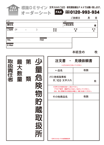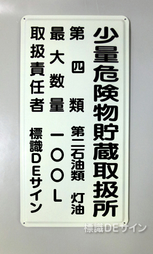 K103 鉄板製標識 「少量危険物取扱所+類別(取扱責任者)」