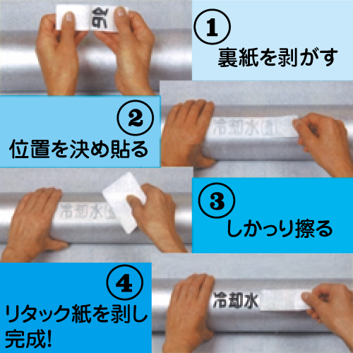 1) 裏紙をはがす際は、文字が裏紙につかない様に、裏紙をリタックシートに押し付けながら、剥がして下さい。