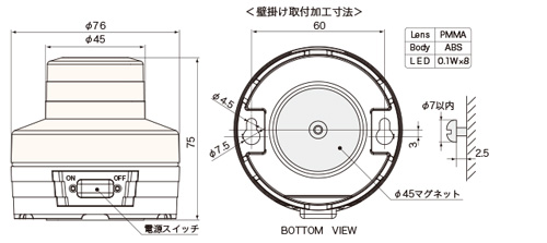 ●強力マグネットで車両、看板などに横向きでも確実に固定できます。
