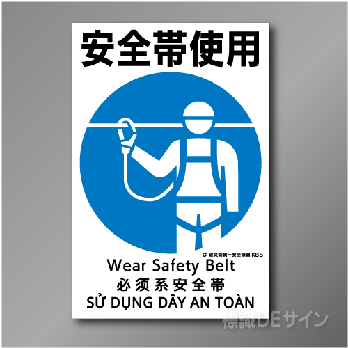KS5 硬質樹脂製 「安全帯使用」 450×300㎜