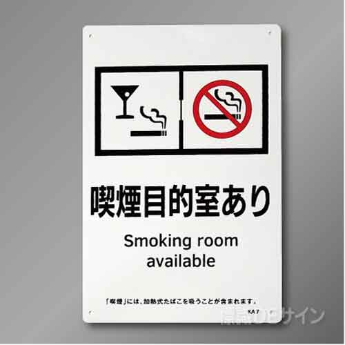 KA7「喫煙目的室あり」 バー・スナック用 硬質樹脂製 300×200㎜