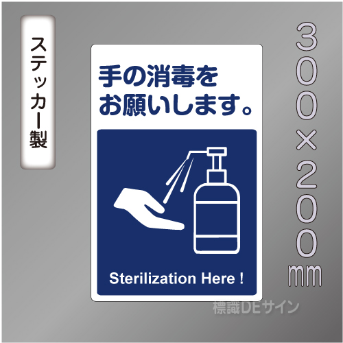CBS203 ステッカー製 「手の消毒をお願いします」 300×200㎜