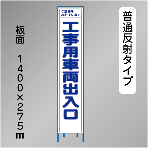 スリム工事看板 HTS-018H 「工事用車両出入口」 275×1400 普通反射 鉄枠付
