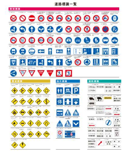 道路・交通標識の一覧表です。ダウンロードをしてご覧ください。