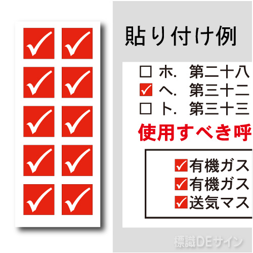 該当箇所に付属の☑チェックマークステッカーを貼って使用して下さい