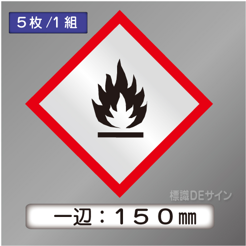 GHSシンボルステッカー 「炎」 大 ◇一辺 150㎜【5枚/1組】