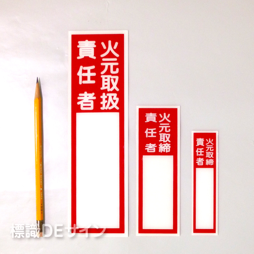 E203 硬質樹脂製 「火元取扱責任者」小 120×30㎜