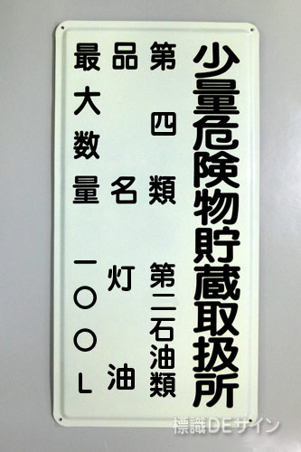 K98 鉄板製標識 「少量危険物貯蔵取扱所+類別」