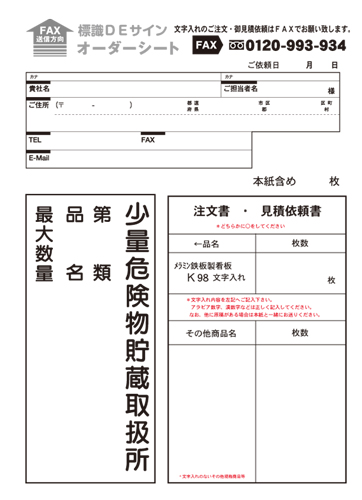 ご注文・見積依頼は下記オーダーシートをFAXでお願いします。